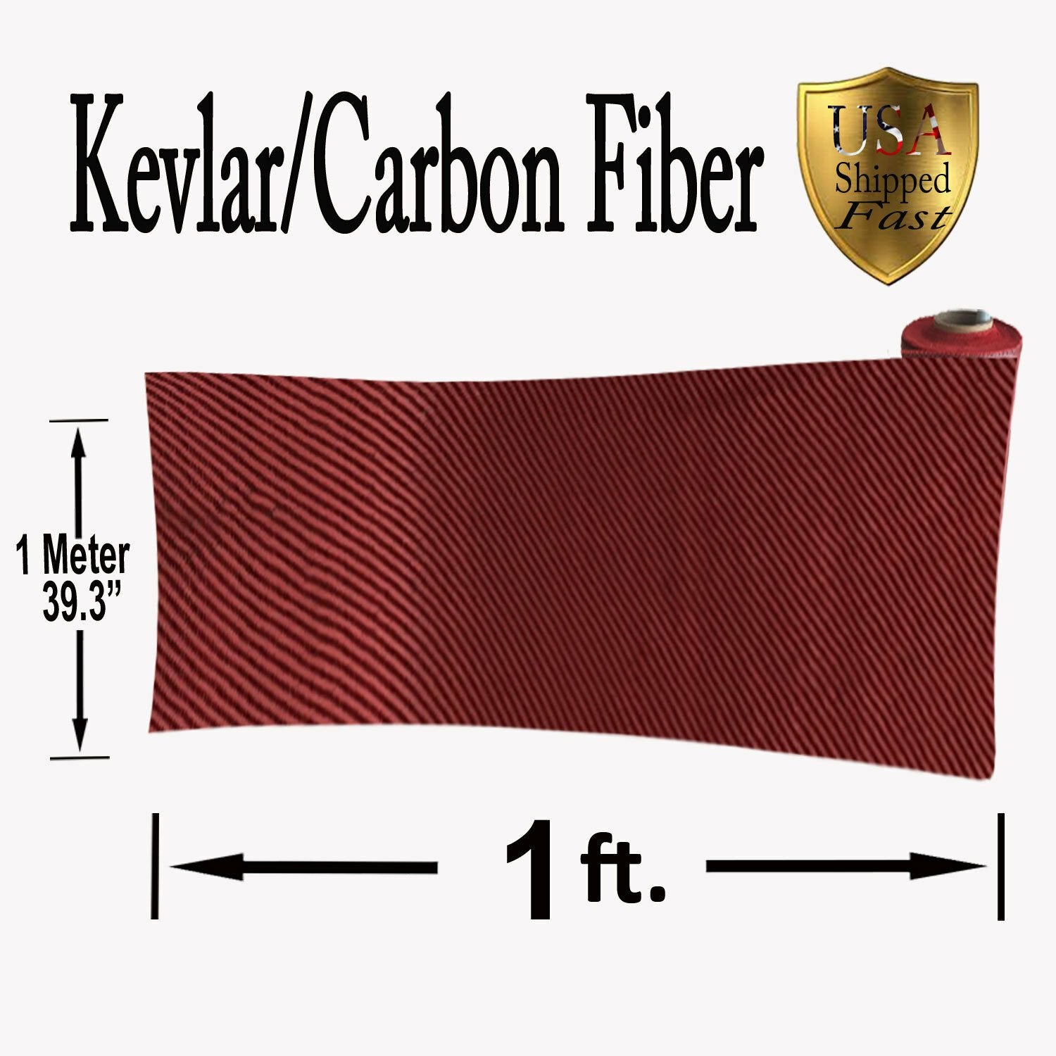 Kevlar Carbon Fiber Twill Weave Fabric - 1 Foot x 1 Meter (3K/2K, 200g/m²) - Red & Black